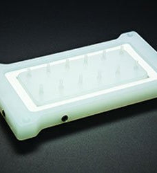 The liner is designed to contain all liquids used in SPE sample preparation. To use the liner, remove the manifold lid and take out the rack and shelf set. Place the disposable liner into the glass vacuum chamber, and replace the manifold lid. Proceed with all conditioning and sample preparation steps. Just prior to final elution, the liner, containing the waste solvents, is removed from the vacuum chamber. There are small handles at each end of the waste liner to facilitate its removal. Replace the lid, and proceed with the final elution of the analyte. Waste solvents should be properly discarded from the liner. The liner can be cleaned and re-used a number of times, prior to discarding.