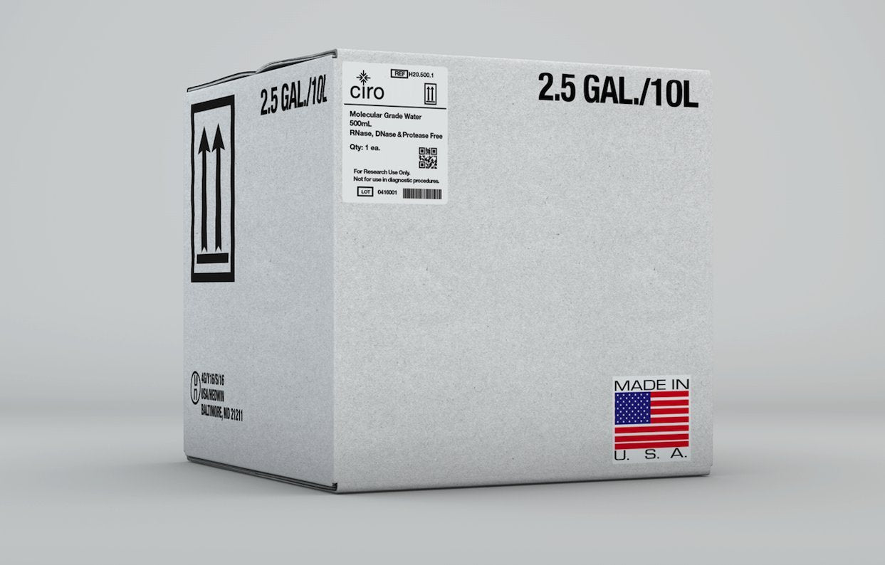 Using Innovative water purification technologies, we produce Nuclease and Protease-free ultrapure water, sterile, suitable for molecular biological applications, such as PCR reactions, 2D electrophoresis, DNA sequencing, buffers for enzymatic analysis and mass spectrometry. Our Molecular Biology Grade Water is deionized and produced without the use of chemical additives like DEPC. No toxic agents are used in the manufacturing of Molecular Grade Water, eliminating DEPC interference of enzymatic reactions. Molecular Grade Water is appropriate for use in molecular biology applications which demand a high quality of water and assurance that the water is free from DNase, RNase and protease contamination. Each batch is sterile filtered down to 0.2 µm to ensure high purity.