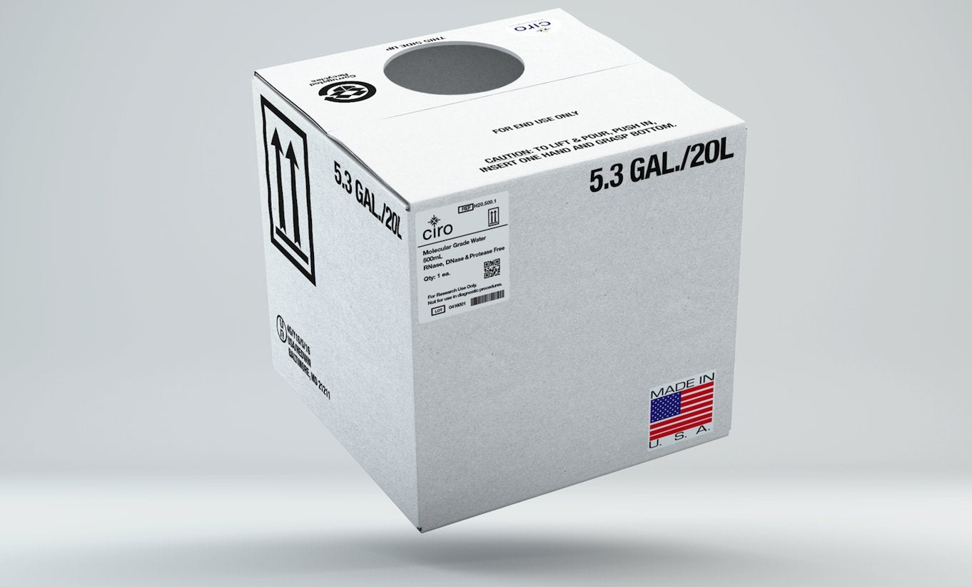 Using Innovative water purification technologies, we produce Nuclease and Protease-free ultrapure water, sterile, suitable for molecular biological applications, such as PCR reactions, 2D electrophoresis, DNA sequencing, buffers for enzymatic analysis and mass spectrometry. Our Molecular Biology Grade Water is deionized and produced without the use of chemical additives like DEPC. No toxic agents are used in the manufacturing of Molecular Grade Water, eliminating DEPC interference of enzymatic reactions. Molecular Grade Water is appropriate for use in molecular biology applications which demand a high quality of water and assurance that the water is free from DNase, RNase and protease contamination. Each batch is sterile filtered down to 0.2 µm to ensure high purity.